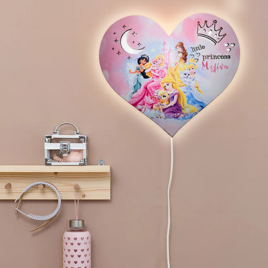 Ξύλινο Φωτιστικό καρδιά - Πριγκίπισσες Disney