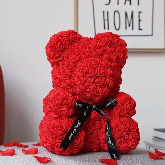 Αρκουδάκι από Τεχνητά Τριαντάφυλλα Κόκκινο