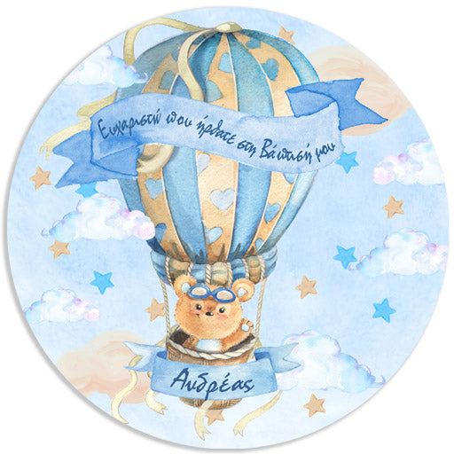 Στρογγυλή αφίσα Βάπτισης Αερόστατο Αρκουδάκι 1,30 x 1,30 m