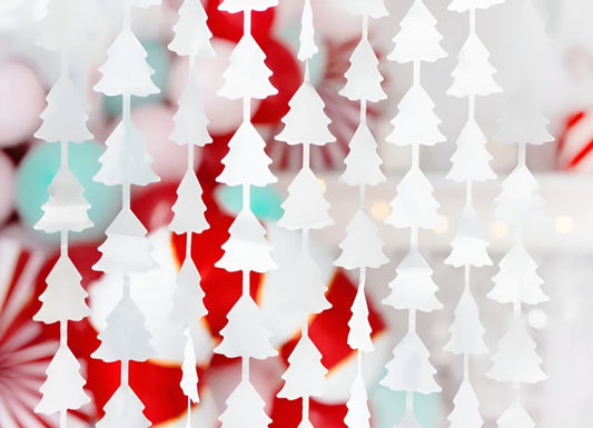 Διακοσμητική Κουρτίνα με ασημί Χριστουγεννιάτικα Δέντρα