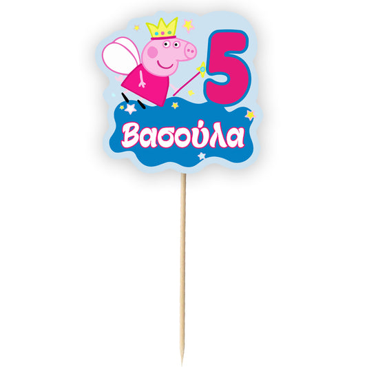 Διακοσμητικό Topper Τούρτας με όνομα - Πέππα το Γουρουνάκι