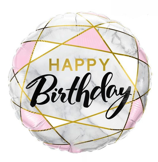 18" Μπαλόνι Happy Birthday Μάρμαρο χρυσό-ροζ