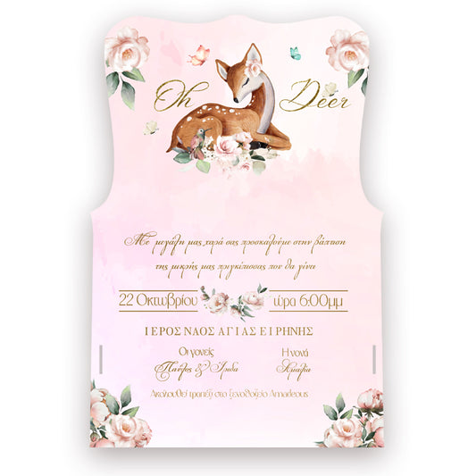 Προσκλητήριο βάπτισης Κοπτικό Ελαφάκι Φλοράλ