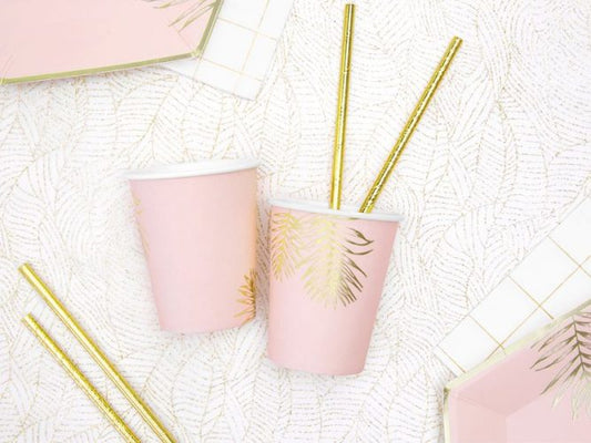 Ποτήρια Ροζ με χρυσά Φύλλα (6 τεμ)