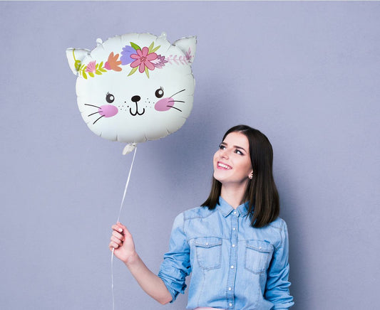 Μπαλόνι άσπρη Γατούλα με Λουλούδια