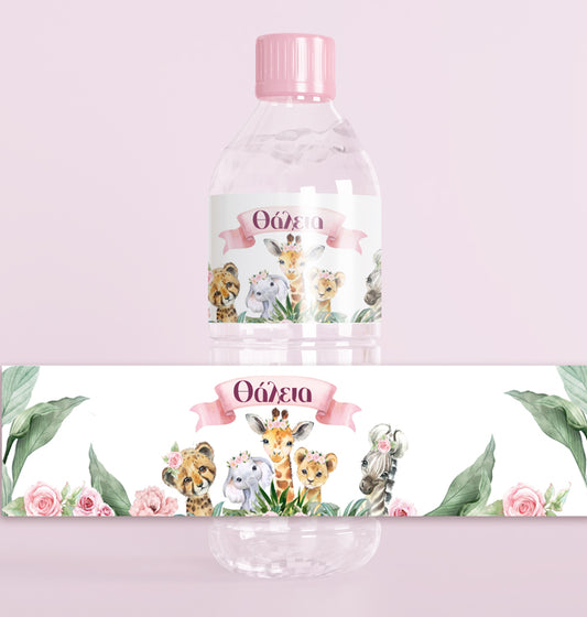 Ετικέτες για μπουκάλια νερού - Ζώα της Ζούγκλας Κορίτσι (8 τεμ)