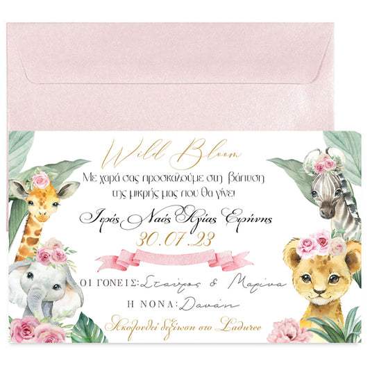 Προσκλητήριο βάπτισης - Ζώα της Ζούγκλας Κορίτσι