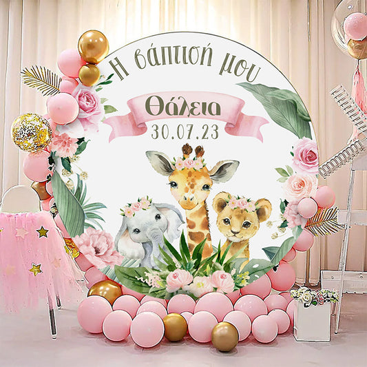 Στρογγυλή Αφίσα Βάπτισης Ζώα της Ζούγκλας κορίτσι
