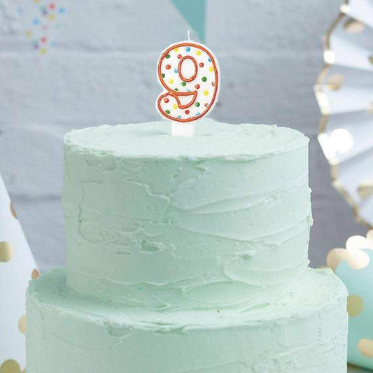 Κεράκι τούρτας No 9 Πολύχρωμο Πουά