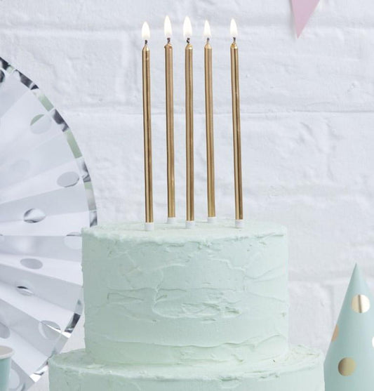 Ψηλά Κεράκια τούρτας Χρυσά (12 τεμ)