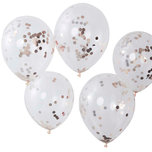 Διάφανα μπαλόνια με Rosegold foil κομφετί (5 τεμ)