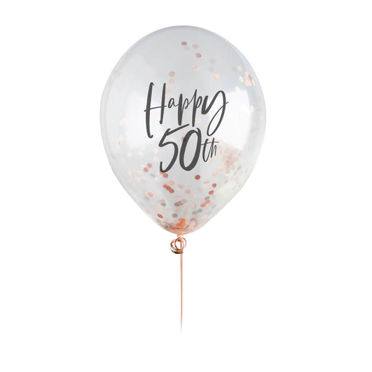 Διάφανα Μπαλόνια 'Happy 50th' με rosegold κομφετί (5 τεμ)