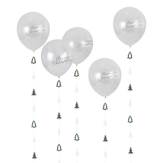 Μπαλόνια Χιονισμένα με ουρίτσα Χριστουγεννιάτικο Δέντρο (5τεμ)