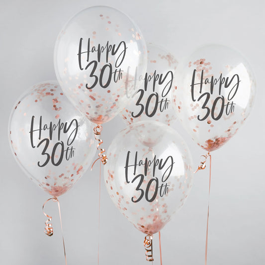 Διάφανα Μπαλόνια 'Happy 30th' με rosegold κομφετί (5 τεμ)