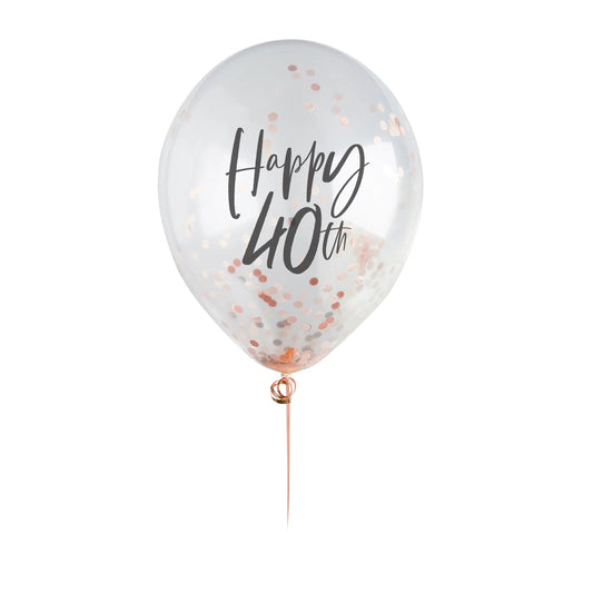 Διάφανα Μπαλόνια 'Happy 40th' με rosegold κομφετί (5 τεμ)