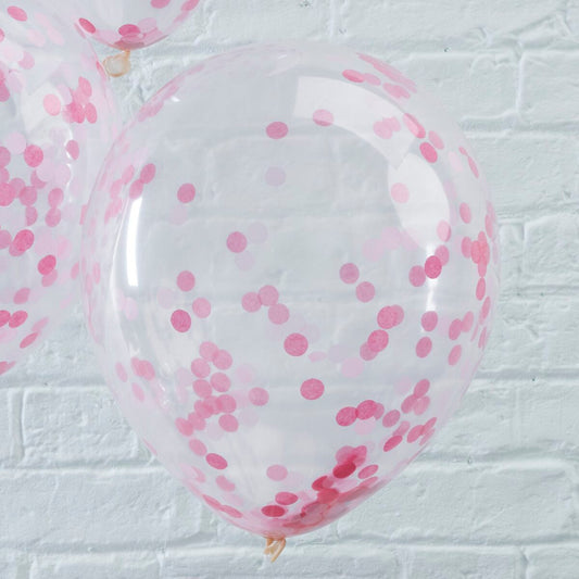 Σετ διάφανα μπαλόνια με ροζ κομφετί (5 τεμ)