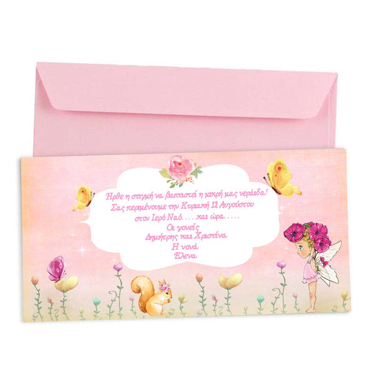 Προσκλητήριο Βάπτισης Νεράιδα με Φάκελο