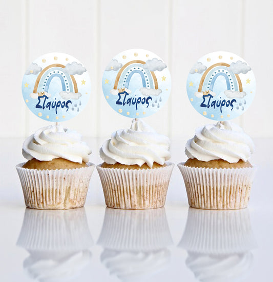 Topper Cupcake Ουράνιο Τόξο αγόρι (6 τεμ)