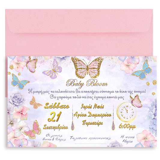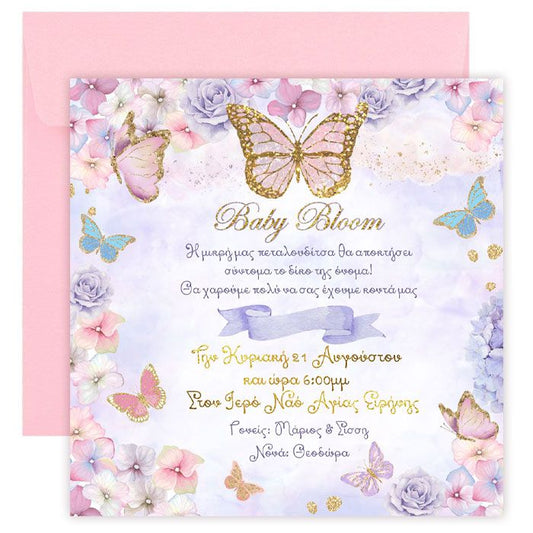 Προσκλητήριο βάπτισης μπαλόνι Πεταλούδα