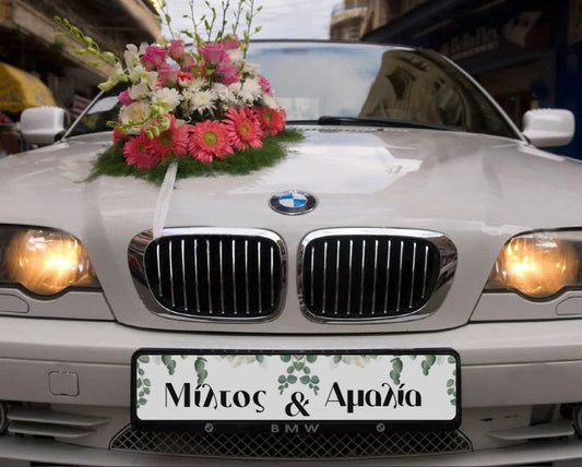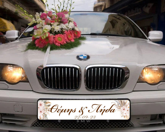 Πινακίδα αυτοκινήτου γάμου "Φλοράλ" (2 τεμ)