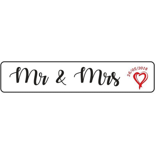 Πινακίδα αυτοκινήτου γάμου Mr & Mrs ημερομηνία (2 τεμ)