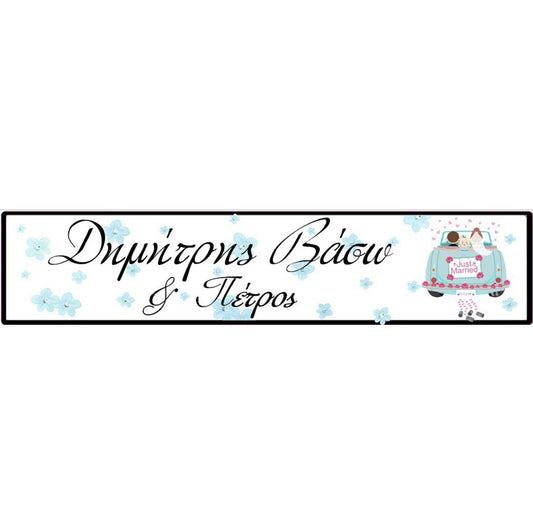 Πινακίδα αυτοκινήτου γάμου Ονόματα & βέρες (2 τεμ)