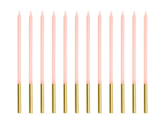 Ψηλά Ροζ Κεράκια τούρτας (12 τεμ)