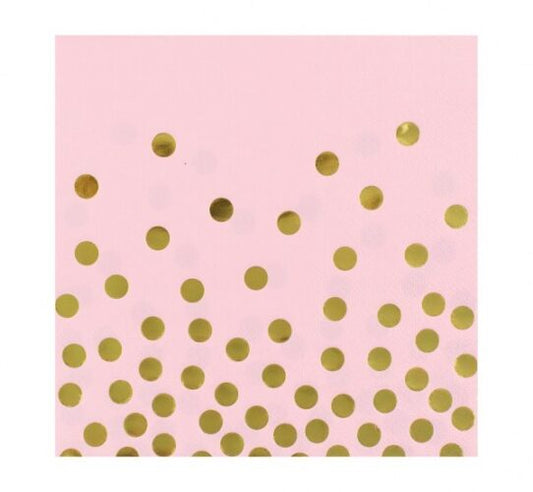 Ροζ Χαρτοπετσέτες με χρυσό πουά (20 τεμ)