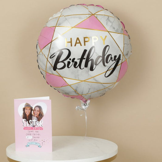 18" Μπαλόνι Happy Birthday Μάρμαρο χρυσό-ροζ