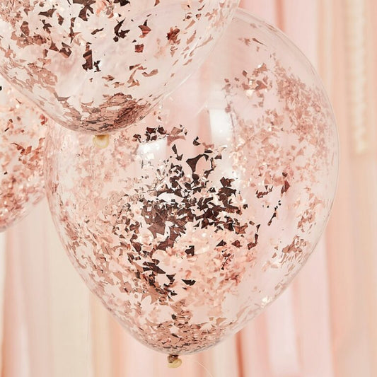 Διάφανα μπαλόνια με Rosegold foil κομφετί (5 τεμ)