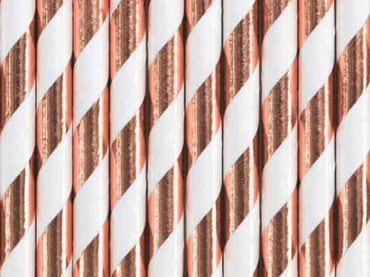 Rosegold χάρτινα καλαμάκια ριγέ (10 τεμ)