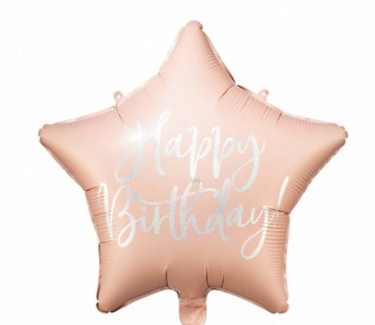 18" Μπαλόνι Αστέρι Happy Birthday Ροζ της Πούδρας