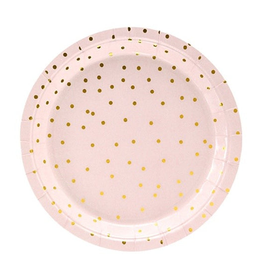 Πιάτα γλυκού Ροζ με χρυσό πουά (6 τεμ)
