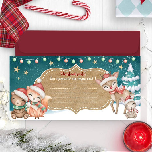 Προσκλήσεις για Χριστουγεννιάτικο πάρτυ Ζωάκια (8 τεμ)