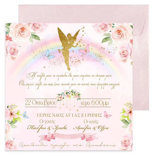 Προσκλητήριο βάπτισης - χρυσή Νεράιδα