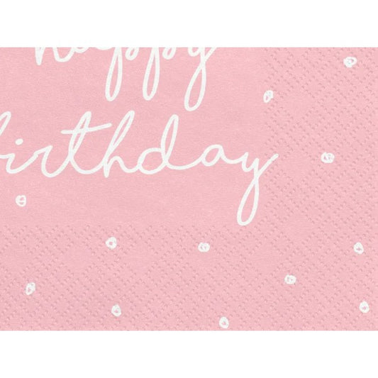 Χαρτοπετσέτες ροζ Happy Birthday (20 τεμ)