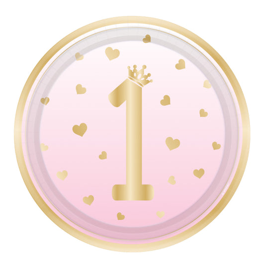 Πιάτα φαγητού 1st Birthday ροζ (8 τεμ)