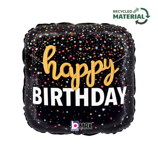 18" Μπαλόνι Τετράγωνο Γενεθλίων Script Confetti