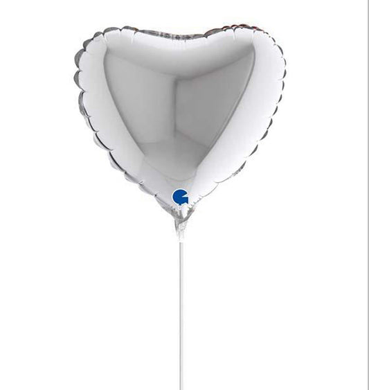 10" Mini Shape μπαλόνι Ασημί Καρδιά (με βαλβίδα)