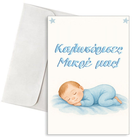 Ευχετήρια Κάρτα Γέννησης Αγοριού - "Καλωσόρισες, Μικρέ μας! "