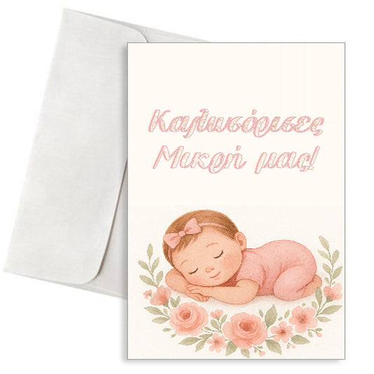 Ευχετήρια Κάρτα Γέννησης Κοριτσιού - "Καλωσόρισες, Μικρή μας! "