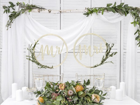 Ξύλινα Διακοσμητικά καρέκλας γάμου Mr & Mrs
