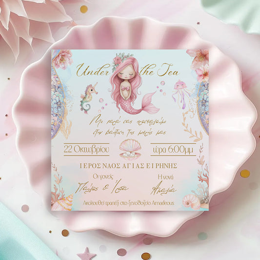 Προσκλητήριο Βάπτισης - Ροζ Γοργόνα