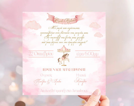 Προσκλητήριο Βάπτισης - Ροζ Καρουζέλ