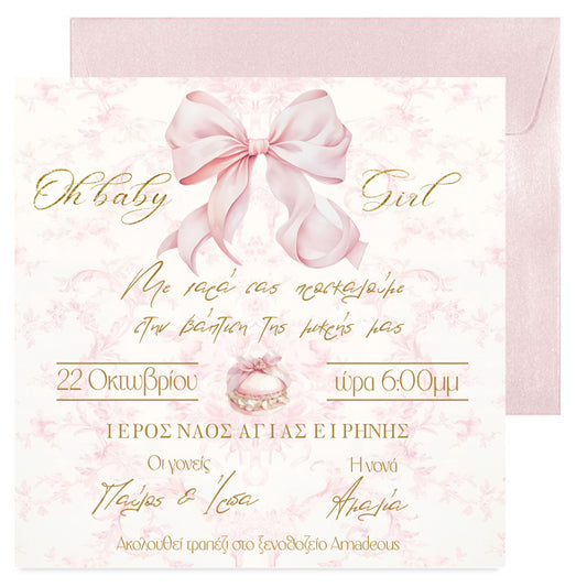 Προσκλητήριο Βάπτισης - Ροζ Φιόγκος