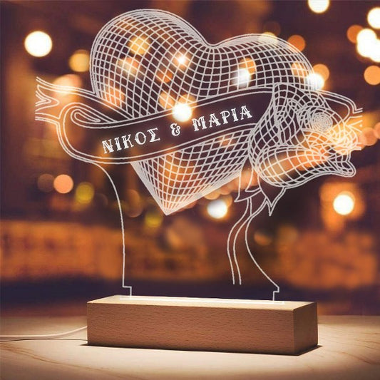 Φωτιστικό led plexiglass - Καρδιά με ονόματα"
