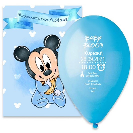 Προσκλητήριο βάπτισης μπαλόνι Baby Mickey