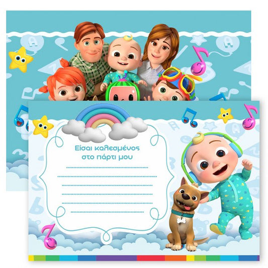 Προσκλήσεις πάρτυ Cocomelon (8 τεμ)