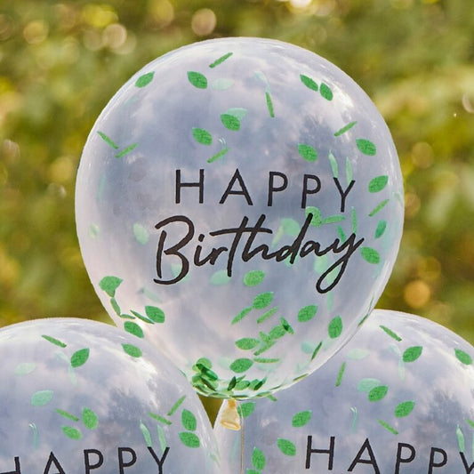 Διάφανα μπαλόνια Γενεθλίων με κομφετί φύλλα (5 τεμ)