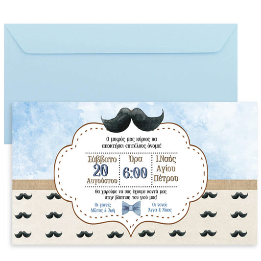 Προσκλητήριο Βάπτισης Little Man με μακρόστενο Φάκελο